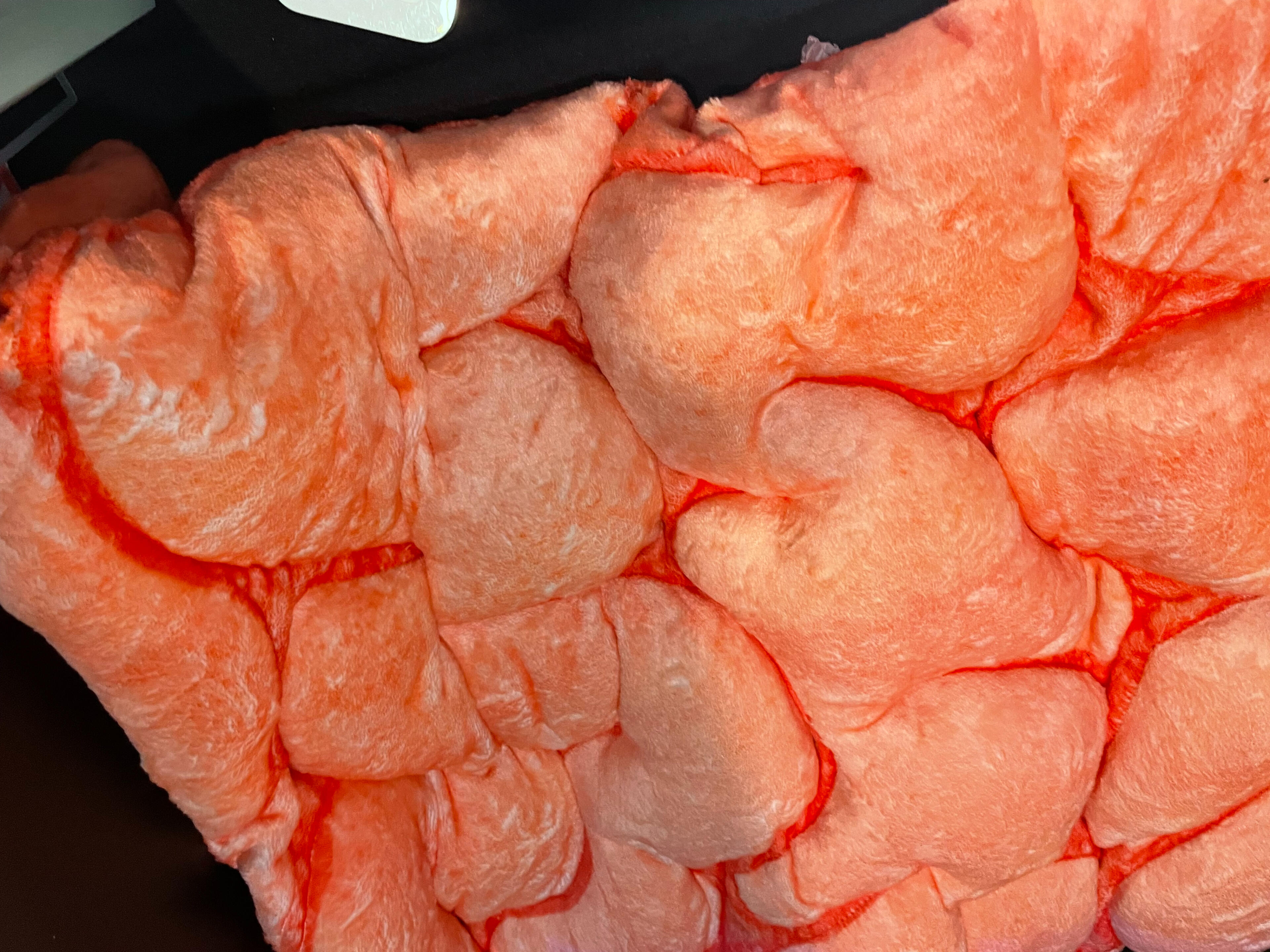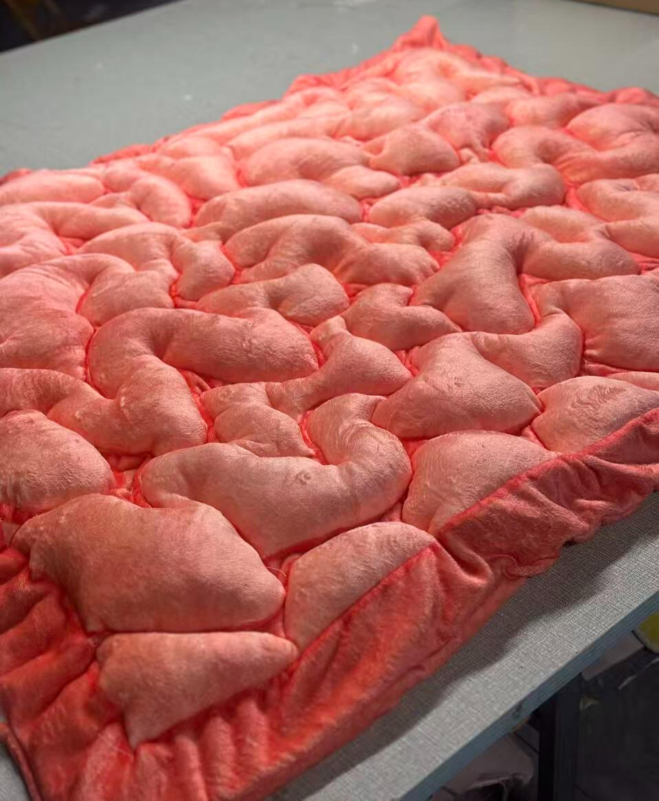 Ever wrap yourself in a blanket to pretend to be inside a belly? Allow me to present the Stomach Blanket, a warm, soft, and squishy plush blanket filled with stuffing that features textures reminiscent of rugae folds. Designed for making a fantasy come to life.